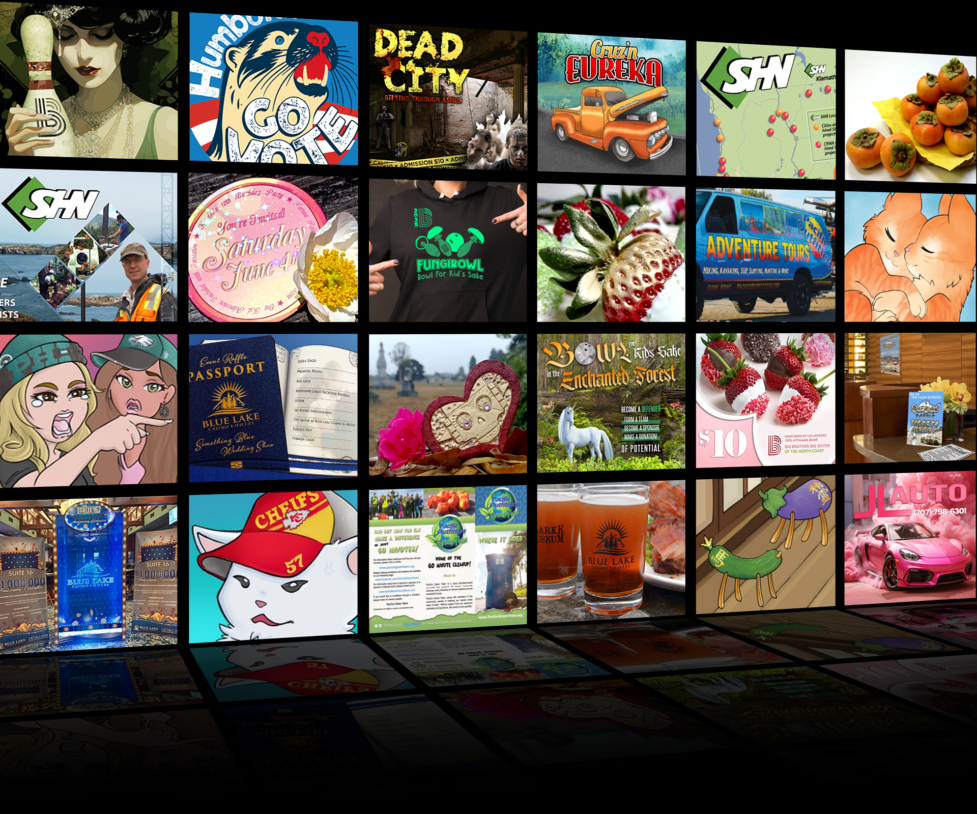 Over the past five years, I have been delighted to participate in various community events and charity fundraisers benefiting underprivileged youth such as Big Brothers Big Sisters of the North Coast’s Bowl for Kids Sake, where I have designed, created, and printed promotional packages and decorations for dozens of fun & fundraising events.